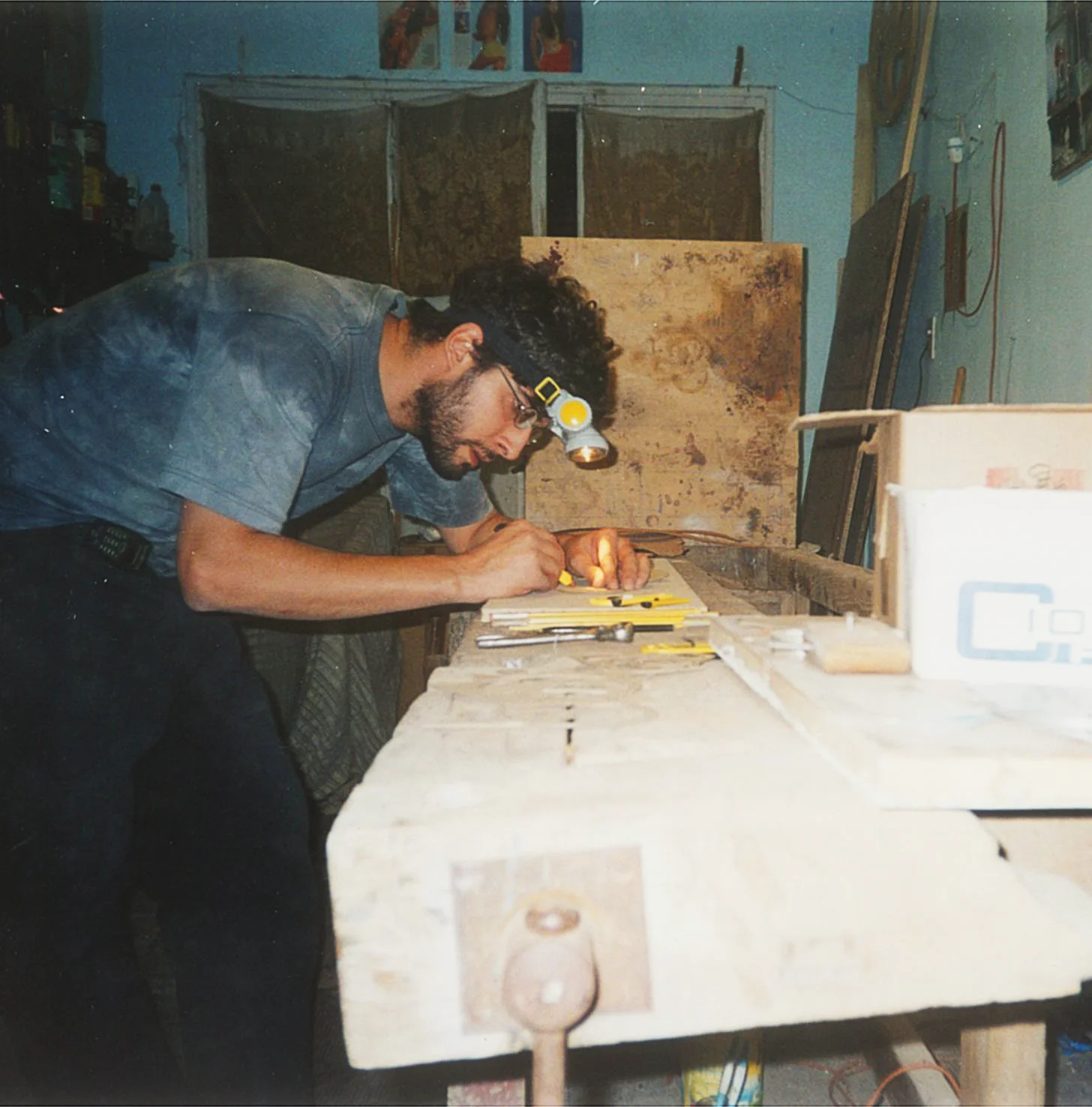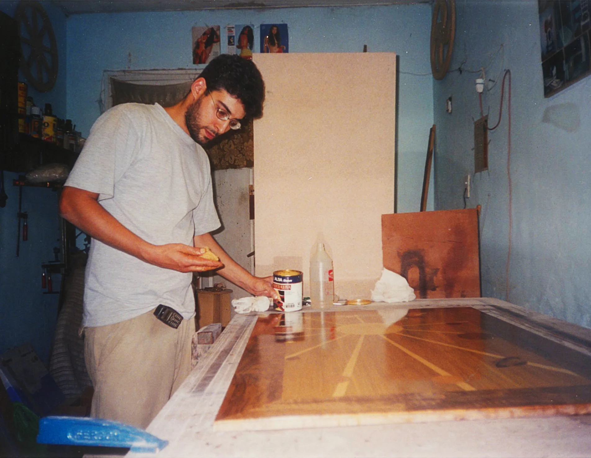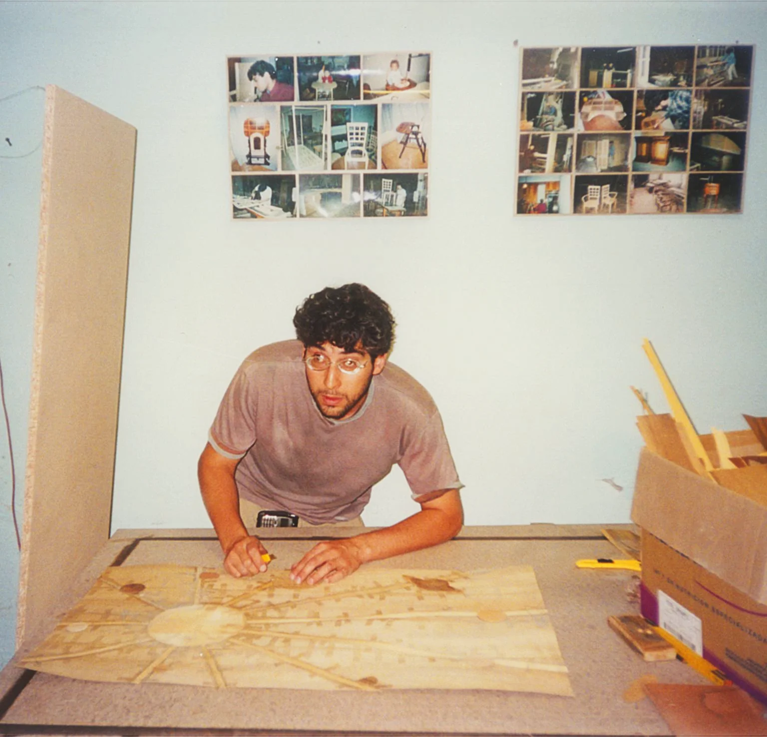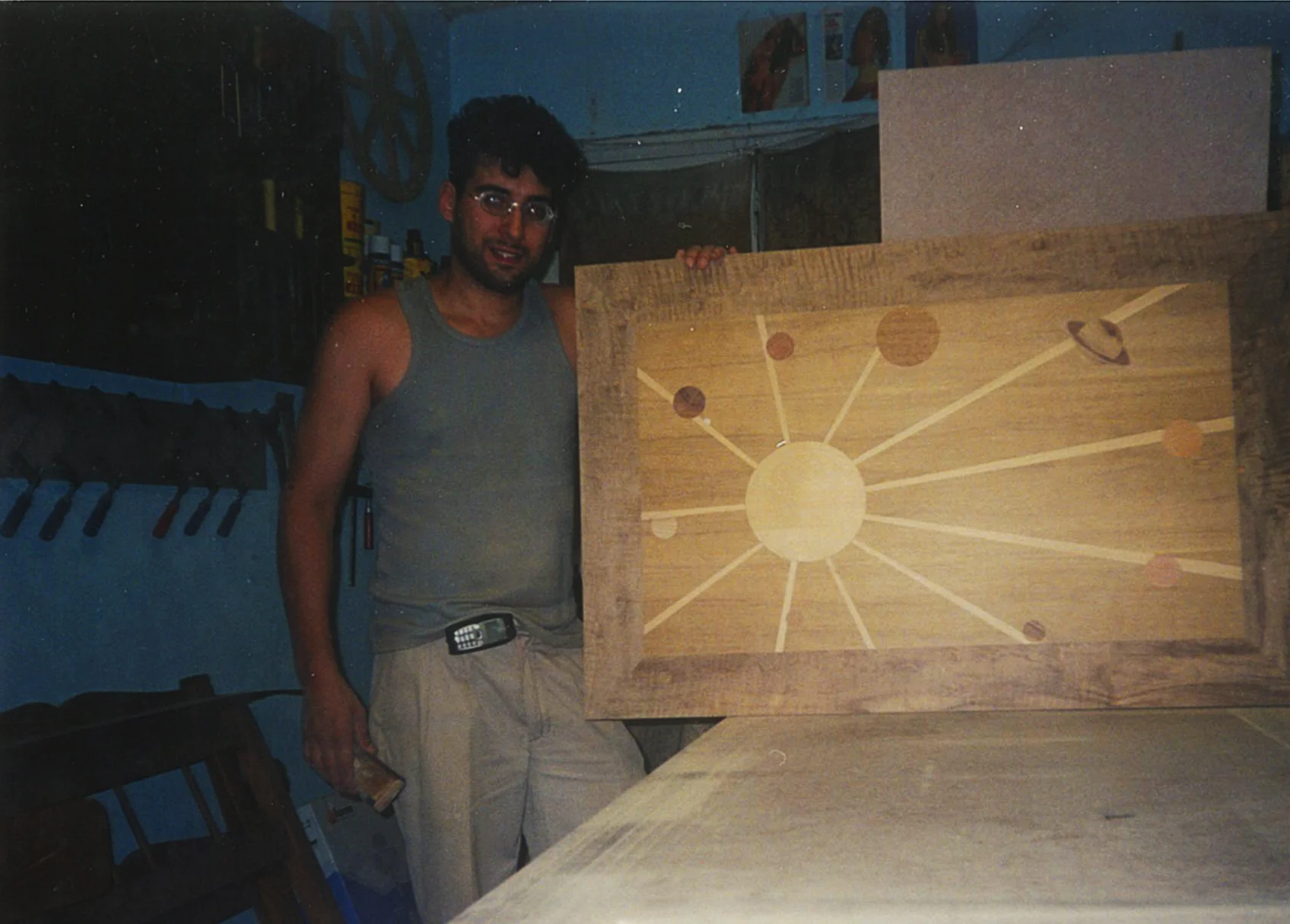 El artista plástico visual Roberto Chiarello, nace en la ciudad de Mendoza, Argentina el 28 de mayo de 1974. Su inicio en el trabajo de la madera, en el mundo de las formas, texturas, volúmenes, planos y lisuras; tonalidades, patinas y lustres, comienza con su padre en el taller de carpintería, muy pequeño, a los 3 años de edad, mientras que entre los 6 y 10 años se inicia en el oficio de la carpintería de aberturas, puertas ventanas, placares, luego se dedica a la creación de muebles y así se especializa en ebanista, muebles de estilo, tallados, con molduras, relieves etcétera. Realiza sus estudios primarios en la escuela cadetes de aeronáutica, en las Heras, el nivel secundario en la escuela de bellas artes y su carrera universitaria, fué abogacía en la universidad de congreso, Mendoza, Argentina.
